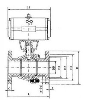 氣動O型切斷球閥產(chǎn)品結(jié)構(gòu)圖: