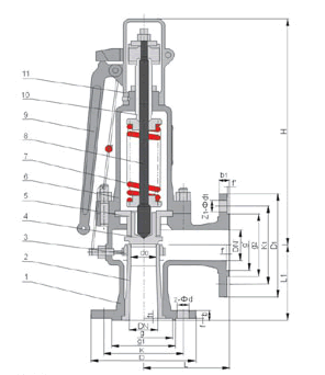 帶扳手微啟式安全閥適用于工作溫度≤350℃的蒸汽、空氣等介質的設備或管路上。作為超壓保護裝置。連接法蘭標準按JB/T-94的系列1。